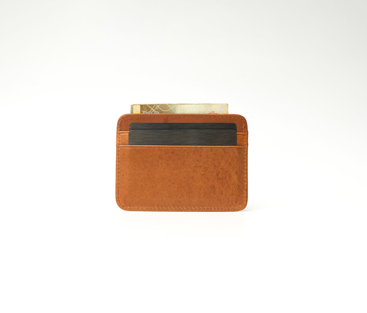 The Scout Saddle Brown cardholder combines minimalist design with premium craftsmanship. Made from full-grain saddle brown leather, its compact 10.5 cm × 8.5 cm silhouette features 4 card slots and a discreet cash compartment. A sleek, timeless accessory for everyday carry.