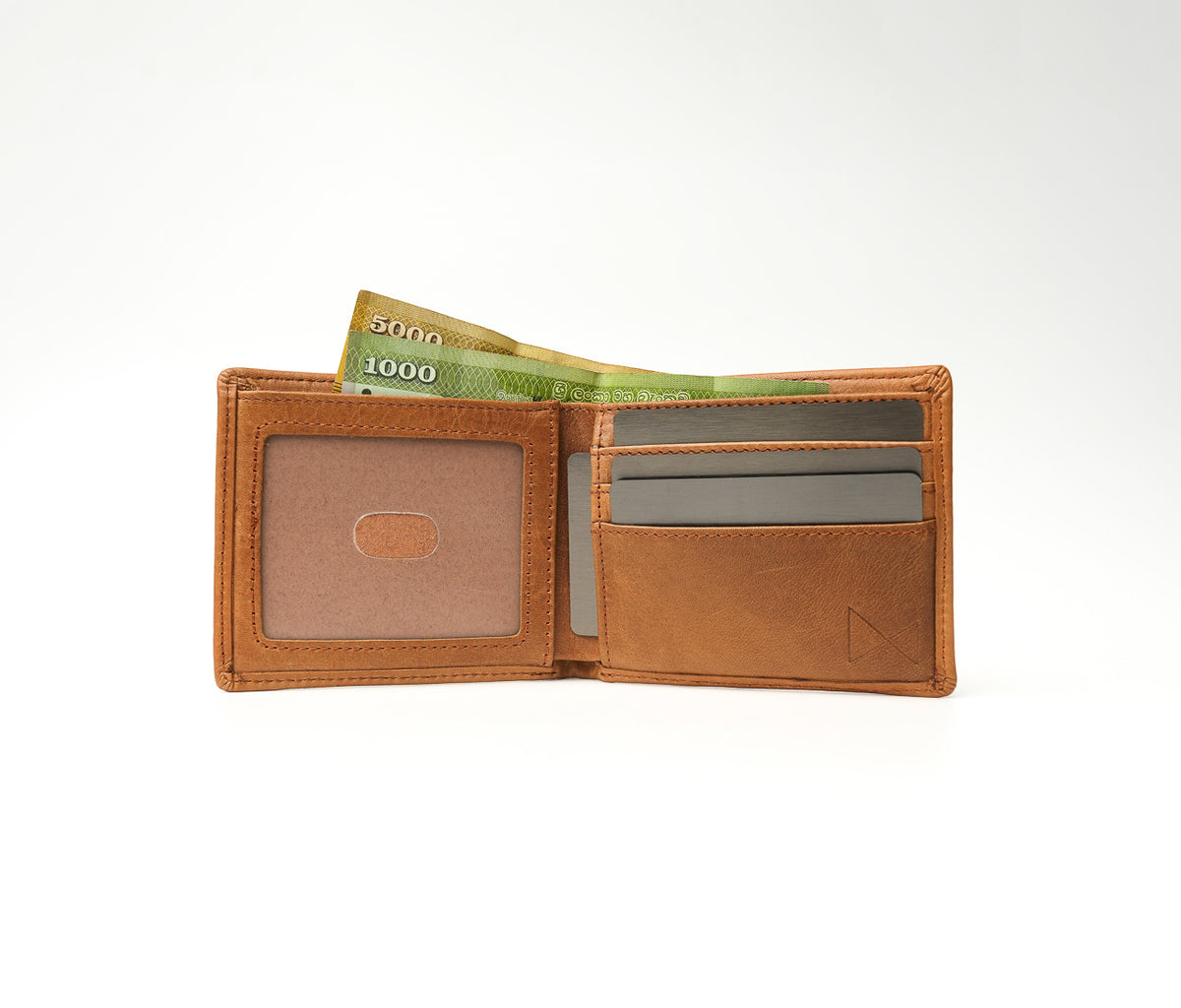 The Ambassador Saddle Brown wallet is crafted from rich, full-grain saddle brown leather with a soft microfiber lining. Its compact 10.5 cm × 8.5 cm profile houses 3 card slots, 1 transparent ID window, and a cash compartment—blending timeless elegance with modern practicality.
