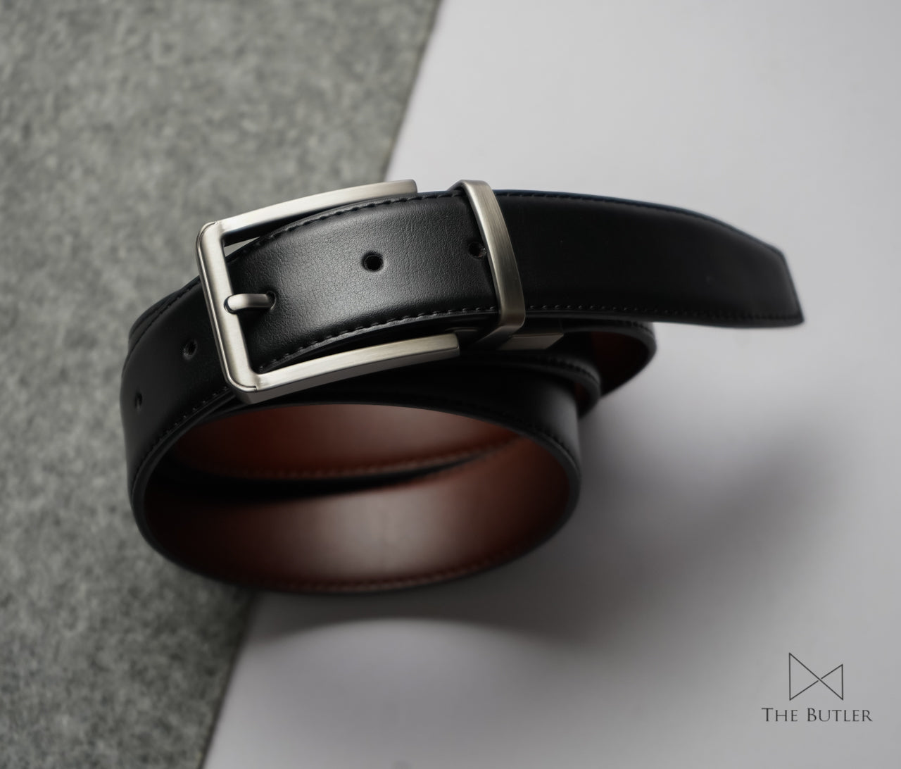 Introducing The Alfred – Reversible Leather Belt, a refined essential crafted from genuine smooth leather. Designed in classic black and brown with a sleek silver buckle, this versatile belt transitions effortlessly from business to evening wear. Its timeless design makes The Alfred an indispensable accessory for the modern gentleman, combining sophistication, functionality, and lasting quality.